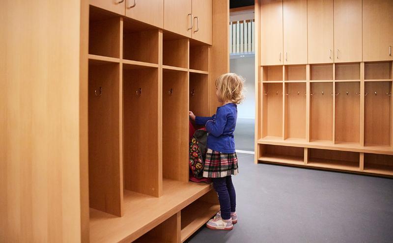 Touches like purpose-built cubbies for each child at the centre, furniture constructed with proper backrests for toddlers and a large roof overhang behind the building to partially shield children from rain, set the space apart from most childcare environments.