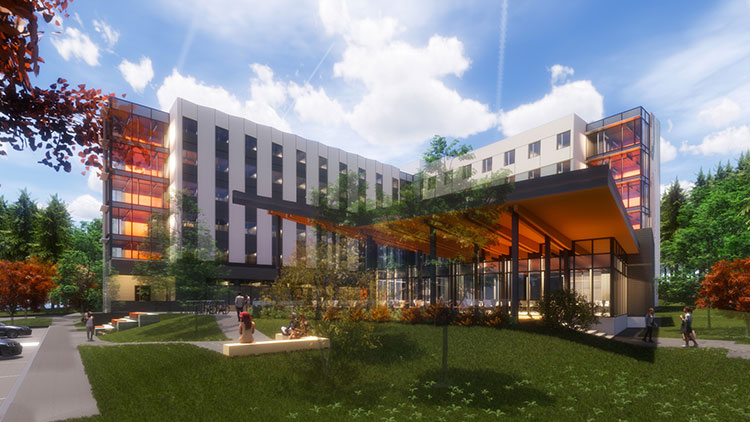 The project will help address the high demand for student housing at the university, which saw 40 per cent more applicants than spaces available in fall 2019 for its off-site leased accommodations. Designated for first- and second-year students, there will be priority access for Indigenous students and it will include a First Nations-focused reflection and gathering space. There will be a mix of single- and double-occupancy rooms, 12 of which will be accessible units.