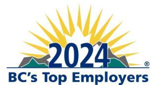 Now in its 19th year, the BC's Top Employers competition recognizes employers in British Columbia that are leaders in offering exceptional places to work. Employers are evaluated using the same eight criteria as the Canada's Top 100 Employers competition: (1) Physical workplace; (2) Work Atmosphere and Social; (3) Health, Financial and Family Benefits; (4) Vacation and Time Off; (5) Employee Communication; (6) Performance Management; (7) Training and Skills Development; and (8) Community Involvement.