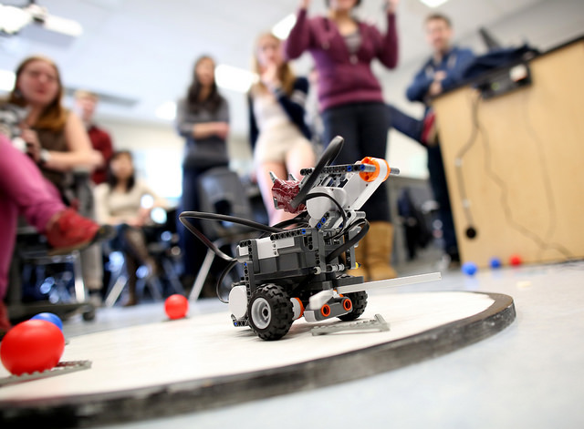 If you were obsessed with Robot Wars and wondered about the technology of its hack-slashing characters, you’ll love this Computer Science class offered at Capilano University. Using the Lego EV3 platform, students learn programming and the mechanics of operating a robot. Working through fun and challenging projects with their robot models, students learn problem-solving and C programming. Each week, student teams are challenged to make their robot do something specific — perform a sequence of actions, make decisions, do multiple actions at once and even communicate with another robot.