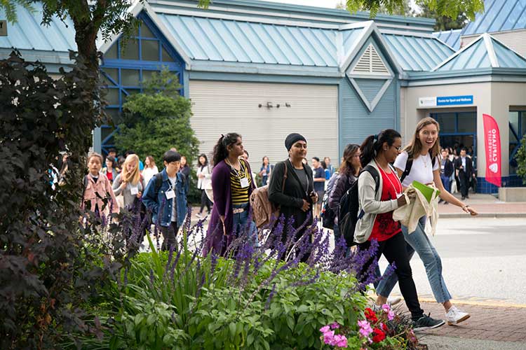 Students walk out of the Centre for Sport and Wellness during a break in the Centre for International Experience's International Student Orientation on Thursday, Aug. 31, 2018.