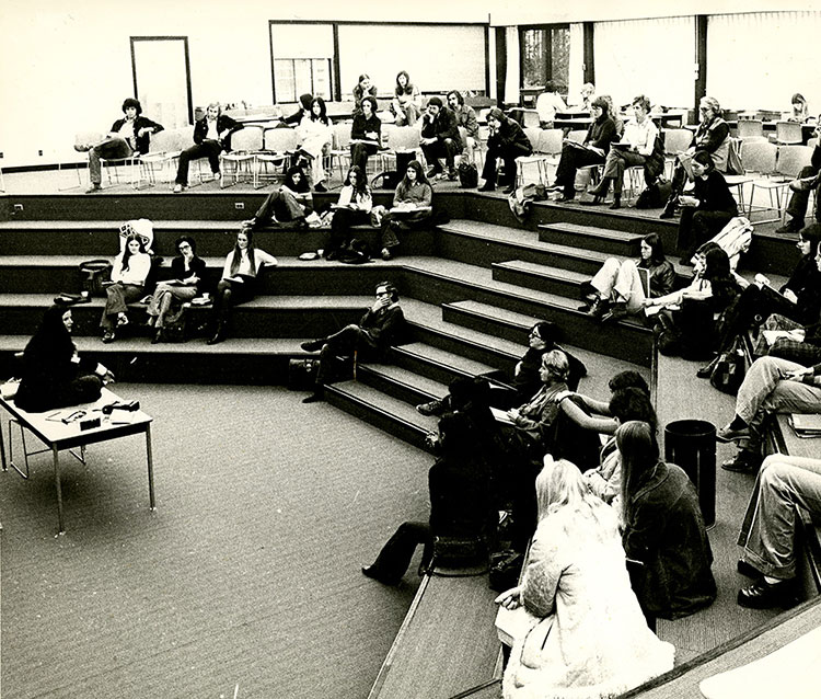 “Reminiscent of Roman amphitheatre, the Cafetheatre at Capilano College is the largest teaching area on the campus and is used not only for educational purposes, but entertainment as well,” states a 1973 article in The Citizen, highlighting the opening of the Lynnmour campus in North Vancouver.