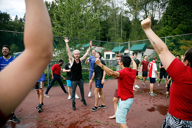 Celebrating after winning the Frozen T-Shirt Race at CapU Residence Community Challenge on Aug. 31, 2019.