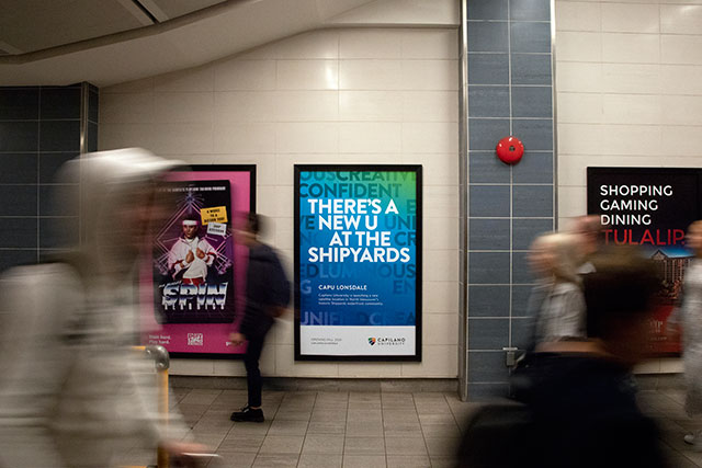 A CapU Lonsdale advertisement is seen at Waterfront Station in Vancouver on Aug. 23, 2019.
