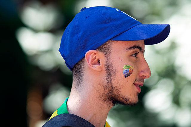 Wearing a CapU temporary tattoo at the Start Right Here New Student Orientation Street Party on Aug. 29, 2019.