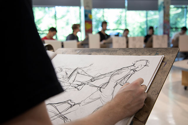 Illustrating during life drawing class on July 25, 2019.