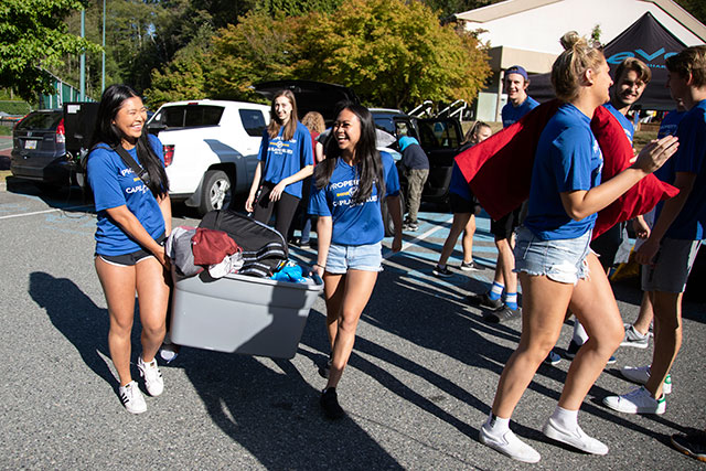 Blues Athletes help new families during CapU Residence move-in day on Aug, 28, 2019.