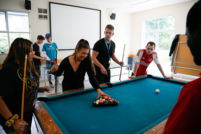 Playing pool at CapU Residence Community Challenge on Aug. 31, 2019.