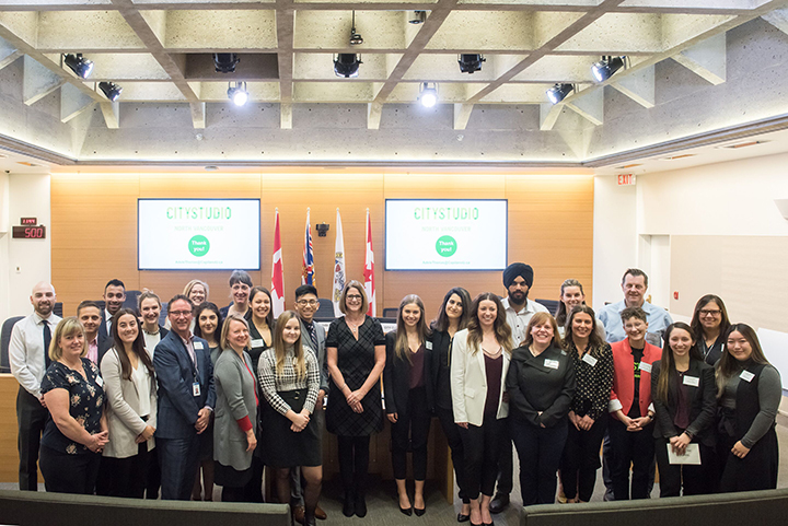 Teams of student participants from CapU's first CityStudio project, in collaboration with the City of North Vancouver (CNV), showcased the results of their innovative project work at the HUBBUB event at North Vancouver's City Hall on December 5, 2019.