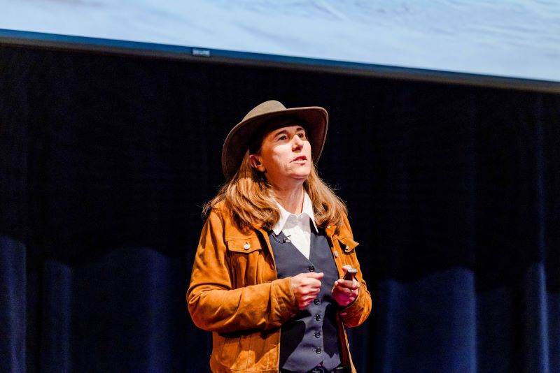 The evening was headlined by award-winning filmmaker, author and CapU alumna Dianne Whelan, whose keynote address reflected on her six-year solo journey across the Trans Canada Trail—an expedition documented in her acclaimed film 500 Days in the Wild. Whelan, a graduate of CapU’s first documentary film program two decades ago, described the opportunity to return and speak as a full-circle moment. Her talk, Stepping into the Unknown, centred on how stepping into the unknown can be a pathway to living an authentic life.