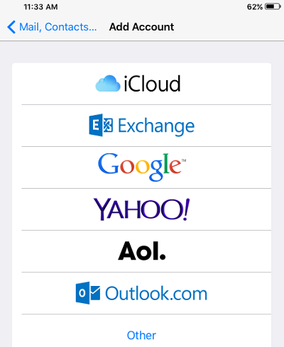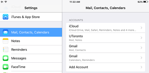 - Go to the Settings on your iOS device and click on Mail, Contacts, Calendars.