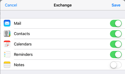 - Choose which information you would like to sync on your iOS device and click Save to complete setup.