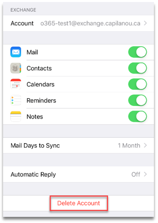 If your server is still set to exchange.capilanou.ca, simply update it to outlook.office365.com, and enter your username and password if prompted.