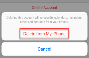 A warning will come up next telling you that deleting the account removes your calendars, reminders, notes and contacts from your phone – it’s safe to delete them, as they’ll come back when you set your account back up again.