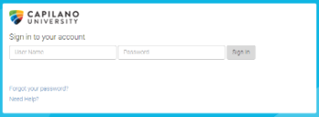 - Go to your myCapU Account and enter your username in the Username field and your current password in the Password field.