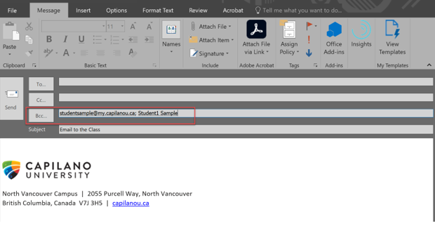 - The icon will open a new email in your default email application, with the student’s emails populated in the BCC Field.