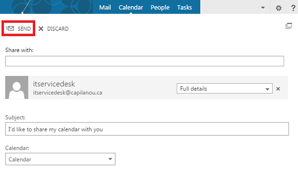 - Right-click on your calendar, choose Share and then click Share Calendar.
