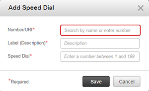 - Number/URI: The extension or 9 followed by the phone number for off-campus numbers