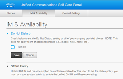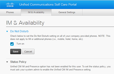 - To set Do Not Disturb from the Cisco Self-Care Portal: