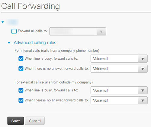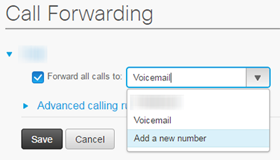 - If you wish to turn off forwarding, deselect Forward all calls to and click Save.