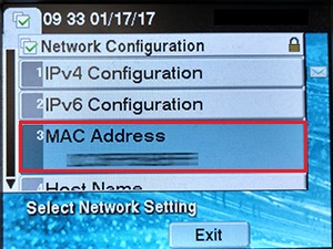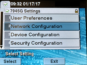 - Choose Network Configuration by using the arrow buttons to highlight the option and then pressing the Select button or the checkmark button.