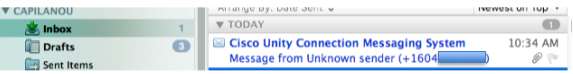 The CapU phone network offers a feature that allows you to listen to your cisco desk phone voicemails from any device that has access to email and a speaker/headphone. When a voice message is left to your Cisco desk phone CapU local (extension), a feature called Unity Connection Messaging will also automatically generate and send that message as an audio file to your CapU Outlook email inbox.