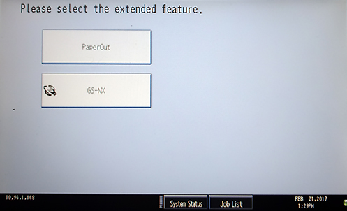 - Walk to a multi-function device and scan your employee card. Once you are logged in, click GS-NX.