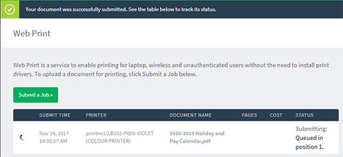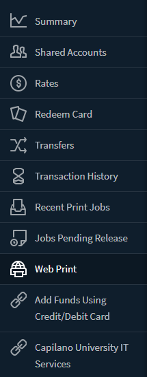 Web Print allows you to print PDF documents or images from your personal laptop while connected to Capilano University Wi-Fi. If you wish to print from a Capilano University owned laptop while on campus, please follow the PC instructions or the Mac instructions provided.
