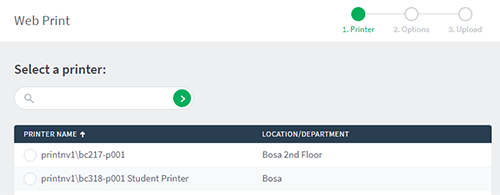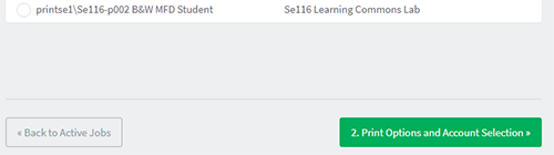 - Once you have selected a printer, click Print Options and Account Selection at the bottom right of the webpage.