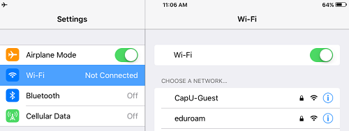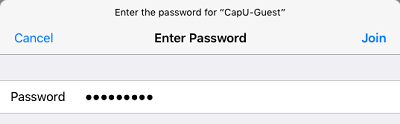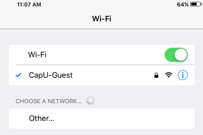 - Your iPhone or iPad is now connected to the CapU-Guest wireless network.