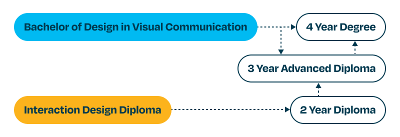 Distinct programs with the ability to ladder within one design school.