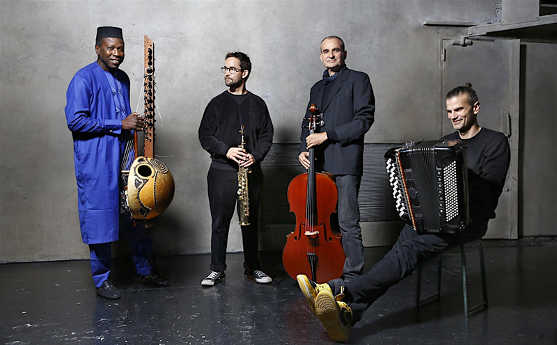 Les Égarés is a genre-spanning jazz-folk-Anatolian band featuring Malian kora maverick Ballaké Sissoko, France's renowned cellist Vincent Segal, accordion virtuoso Vincent Peirani and soprano saxophonist Émile Parisien, whose gorgeous, voice-like playing echoes the great Sidney Bechet. The quartet’s name means “those who stray” and all four musicians prove their credentials of possessing experimental genre-crossing brilliance. The band’s outstanding self-titled debut album released last year, mixes various flavours of music from Armenia, Transylvania and Turkey, along with Coltrane-inspired jazz, tango and Mandingo music – all enlivened with lyrical kora hooks, nimble accordion post-bop and haunting cello harmonies. An evening of unique, sublime music awaits those lucky enough to attend!